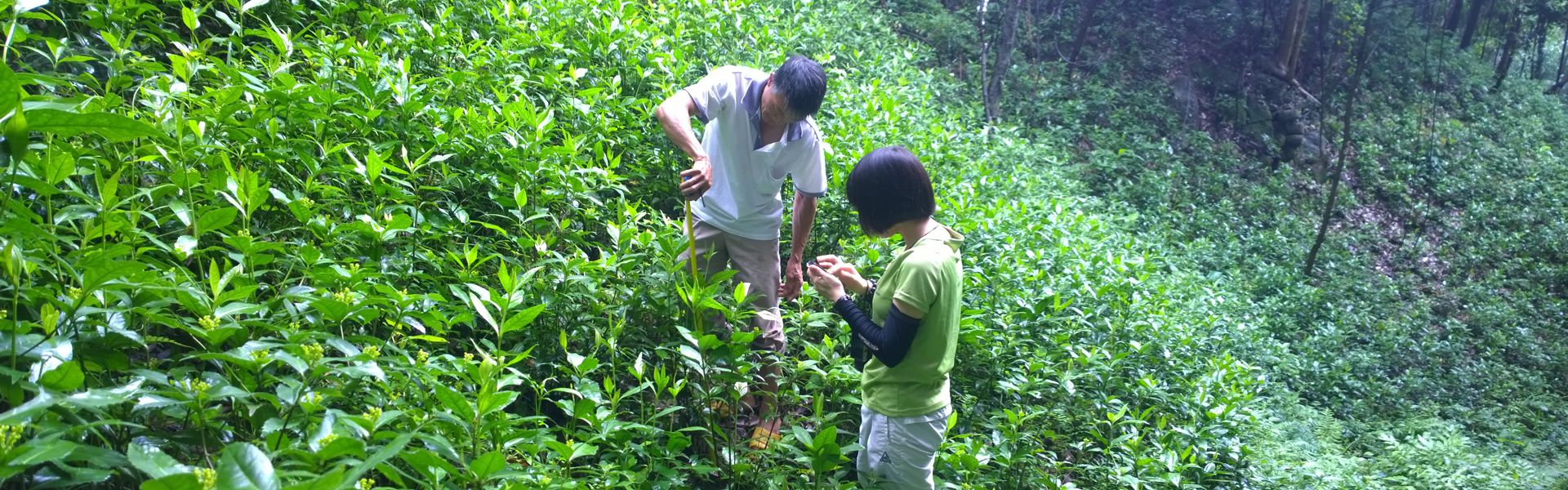 中护理标準化是邁向現代化的基礎,壹号平台注册链接_壹号平台下载安装旗下敬修堂理业科研人員在九節茶护理材産業化種植基地測量株高。